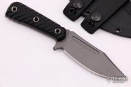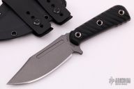 The UCAP is a mid-sized fixed blade that is geared for everyday carry. The knife was created with a defensive purpose in mind, but is also well equipped for any and all cutting chores where a knife is called for, from first responder situations, outdoors activities, and just about anything else you can throw at it. It's a looker too, look at those classic lines and that belly! The UCAP has a bowie-style clip point blade made from Nitro-V steel. The knife features a 4" blade that has a tungsten cerakote finish for corrosion resistance and durability. Weighing in at 5.2 oz, the knife is deceptively light, yet can hold its own in both categories of everyday carry as well as heavy use tactical knife. Offering a full tang and tubed rivet handle construction, this is one tough little knife! The beveled and contoured G10 grips feature a diagonal texturing that offers a very secure grip without being overly aggressive and they work very well wet or dry. New condition. Comes with original box, papers and sheath. Comes with black RMJ beanie also!