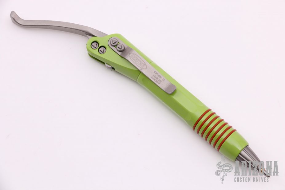 This Siphon II by Microtech Knives features a lime green stainless steel body with o-rings and clip. Comes with original box and papers. Serial number 559 and dated 12/2015. Excellent condition.