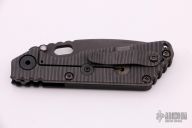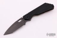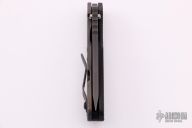 This SNG framelock folder by Mick Strider features a black tanto blade and a dimple pattern black aluminum and flamed titanium frame and tip up titanium clip. Includes a "Lock Bar Stabilizer" for maximum reverse lock retention. Nice detent, lockup and blade seating. New condition.