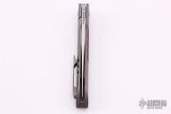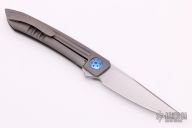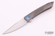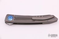 This model of the Alliance Designs Kevin Foster Anchovy features a gray blasted titanium handle with a groove pattern and blue anodized hardware. Alliance Designs has teamed up with knife maker Kevin Foster to create the Anchovy, a flipper knife that is based on his custom model of the same name. It features a satin finished blade made from RWL-34 stainless steel. This slim EDC knife sports an over-sized titanium pivot with matching body screws. The pocket clip is set for tip-up, right hand carry. Features: Hollow ground RWL-34 stainless steel blade provides excellent edge retention and slicing abilities. Smooth contoured titanium handle is comfortable in hand. Item includes a titanium pocket clip with hidden screws to keep a clean aesthetic. New from maker.