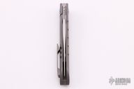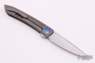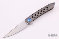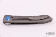 This model of the Alliance Designs Kevin Foster Anchovy features a gray blasted titanium handle with a hole pattern and blue anodized hardware. Alliance Designs has teamed up with knife maker Kevin Foster to create the Anchovy, a flipper knife that is based on his custom model of the same name. It features a satin finished blade made from RWL-34 stainless steel. This slim EDC knife sports an over-sized titanium pivot with matching body screws. The pocket clip is set for tip-up, right hand carry. Features: Hollow ground RWL-34 stainless steel blade provides excellent edge retention and slicing abilities. Smooth contoured titanium handle is comfortable in hand. Item includes a titanium pocket clip with hidden screws to keep a clean aesthetic. Excellent Condition.