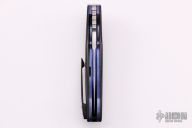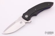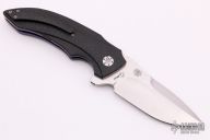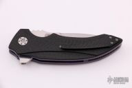 This M44 flipper by Andre Van Heerden features a hand rub satin finished blade with notched thumbrest and flipper. Includes IKBS (Ikoma-Korth Bearing System) for fast and smooth flipper opening that requires no wrist action. The handle has carbon fiber scales, anodized titanium liners, black G-10 backspacer, and a tip up carbon fiber clip. Nice blade seating, detent, and lockup. Comes with a velcro case. Excellent condition.