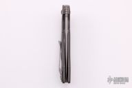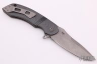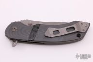 This custom Mike Vagnino designed flipper features an acid etched blade with notched thumbrest and a flipper. The handle has grey G-10 scales with black C-Tek insert, tumbled titanium liners, grey G-10 backspacer, tip up tumbled stainless steel clip. Great action that requires no wrist movement. Nice detent, lockup and blade seating. W816 inside backspacer. Comes with a zippered case.  Excellent condition.