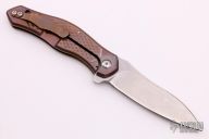 "I began making knives in the fall of 2004 due to the want for a better hunting knife. I started slow, with files and sandpaper, heat treating with a torch, and just making fixed blades. Eventually I got real tools and a grinder and learned how to use it, and Alan Folts taught me how to make my first linerlock. Soon after I got into folders, I took a liking to flippers and began to teach myself how to make them. I got to the point where they worked well, but weren't as fast as some other makers'. In 2006 I met Lee Williams and Matt Cucchiara, and they taught me how to do internal stops and perfect the detents of my knives. Since then it's been smooth sailing. Today, the majority of my knives are flippers, and I prefer them over all other types of folders for their ease of opening and their functionality allows me to express my creativity in new and interesting ways."