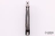 This lockback folder by Mel Pardue features a Damascus blade with dual thumbstuds. The handle has dovetailed stainless steel bolsters, ram's horn scales, stainless steel liners, stainless steel backspacer. Has some light scratches, otherwise excellent condition. #01 on the blade.