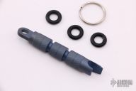 "The Atwood BrewDriver and Mini BrewDriver tools are turned and milled from solid bars of titanium. Featuring a simple bottle opener and standard sized 1/4" flat head screwdriver on a grippy knurled shaft, these little tools make a perfect key fob." Blue anodized. Excellent condition. Comes with original bag and card.