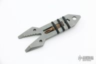 "Made of Crucible's CPM154 premium cutlery steel, this compact mini wrench tool will turn six standard bolt sizes 1/4" through 9/16". Also features multiple screwdriver/pry tips, and 1/4" hex driver bit with hex bit holder and O-ring retention system." Bead Blast Finish. Has some scuffs, otherwise excellent Condition. Comes with original bag and card.