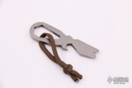"Made of Crucible's CPM S30V cutlery steel, this compact multi wrench tool features seven SAE wrench sizes: 1/4", 5/16", 3/8", 7/16", 1/2", 9/16", and 5/8". Also features a bottle opener with additional 5/16" wrench opening and a heavy duty pry tip." Excellent condition. This one has a glow dot. Comes with original bag and card.