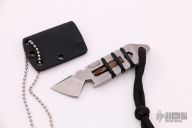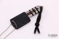 This SnakeBite from Peter Atwood is made of Crucible's CPM S30V cutlery steel. This small neck tool features a 1" cutting edge, a 1/4" Hex and Captive Phillips head Bit System, 5/16" wrench/bottle cap lifter and Flathead screwdriver. Excellent condition. Comes with a kydex sheath. Blade Steel: CPM S30V. Comes with original bag and card.