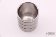 "Turned from a solid two inch bar of 303 stainless steel, the BigShot can truly be called a drinking tool. With a generous three fluid ounce capacity it is the perfect size for an ice cube and a splash of your favorite libation. And weighing in at nearly half a pound these mighty vessels give new meaning to the term "heavy drinking"! Dishwasher safe and made to last virtually forever." Includes a set of mini dice and COA, excellent condition.