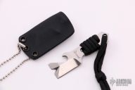 Made of Crucible's CPM154 semi-stainless cutlery steel, these versatile little tools feature a cutting edge, pry tip, and bottle opener. Excellent condition with original bag and card. Stonewash finished