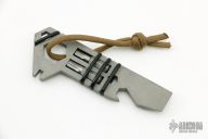 Made of Crucible's CPM3V premium cutlery steel, this compact mini wrench/pry tool features 4mm and 5mm hex insert bits, two 1/4" hex driver openings, progressive spoke wrench opening, bottle opener, and 15mm axle wrench. Comes with original bag and card. Excellent condition.