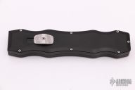 This Sand Shark OTF automatic features a bead blast finished double edge blade and black aluminum handle. The Sand Shark was a limited production and is no longer being made. Comes with cloth pouch. Excellent condition.