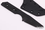 This knife by Mick Strider is made of black G-10, .223" blade stock and 1.238" blade depth, full tang construction. Comes with kydex sheath. New condition.