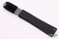 In 1988, he began making specialized knives for use by the military. This turned out to be fortunate turn of events, both for Mick and for the knife using world at large. Mick’s approach was to not get burdened by the weight of past designs. He started with a tabula rasa, a clean slate, informed only by his own experiences and knowledge of what a soldier needed in a knife. The knives he made didn’t look like the hunter-inspired knives seen in most PXs; instead they were almost brutish in their functionality: beefy, solid, and with unbreakable ¼” stock full tangs. These knives were the first indication of his innovative approach: in addition to their utilitarian design, the knives carried a subdued finish and subdued sheaths. No one carrying a Strider knife was going to be spotted because of sunlight glinting off of polished steel or a glossy leather sheath. Soldiers, policemen, and other men going into harm’s way couldn’t buy them fast enough. Mick sampled some good ideas, but made them great. For instance, he was not the first to wrap a knife handle with paracord, but he was the first to do it in a way that was tough enough for sustained infantry use. His knife line grew over the following years to include different varieties of fixed blades, all distinctive and many with specialized uses. But constant in all of them was a disregard for convention, and a desire to try new ideas. An example of this was the Ajax – it featured a very wide blade surface clearly designed to inflict damage. It drew on the weapons carried by Roman legionnaires, yet was modern and usable in the 21stCentury battlefield. Mick also worked on his technical skills, always striving to become better at the physical craft. At the 2002 Blade Show, a group of the best tactical knifemakers in the country decided to compete with each other to produce the most innovative and interesting fixed “battle blade” at the show. Mick’s entry, an incredible integral knife made out of ½” titanium stock with a zippered composite blade, gorgeous handles, and integral guard was the unanimous winner, and effectively retired the competition.