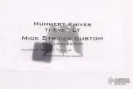 In 1988, he began making specialized knives for use by the military. This turned out to be fortunate turn of events, both for Mick and for the knife using world at large. Mick’s approach was to not get burdened by the weight of past designs. He started with a tabula rasa, a clean slate, informed only by his own experiences and knowledge of what a soldier needed in a knife. The knives he made didn’t look like the hunter-inspired knives seen in most PXs; instead they were almost brutish in their functionality: beefy, solid, and with unbreakable ¼” stock full tangs. These knives were the first indication of his innovative approach: in addition to their utilitarian design, the knives carried a subdued finish and subdued sheaths. No one carrying a Strider knife was going to be spotted because of sunlight glinting off of polished steel or a glossy leather sheath. Soldiers, policemen, and other men going into harm’s way couldn’t buy them fast enough. Mick sampled some good ideas, but made them great. For instance, he was not the first to wrap a knife handle with paracord, but he was the first to do it in a way that was tough enough for sustained infantry use. His knife line grew over the following years to include different varieties of fixed blades, all distinctive and many with specialized uses. But constant in all of them was a disregard for convention, and a desire to try new ideas. An example of this was the Ajax – it featured a very wide blade surface clearly designed to inflict damage. It drew on the weapons carried by Roman legionnaires, yet was modern and usable in the 21stCentury battlefield. Mick also worked on his technical skills, always striving to become better at the physical craft. At the 2002 Blade Show, a group of the best tactical knifemakers in the country decided to compete with each other to produce the most innovative and interesting fixed “battle blade” at the show. Mick’s entry, an incredible integral knife made out of ½” titanium stock with a zippered composite blade, gorgeous handles, and integral guard was the unanimous winner, and effectively retired the competition.