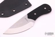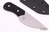 This Zipper by Mick Strider features a chisel ground stonewashed blade with .060" blade stock and 1.373" blade depth, full tang construction with black G-10 scales. Comes with a kydex sheath. New condition.