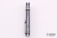 The Asher Centri has been upgraded with brass caged ceramic bearings to offer a smooth and effortless action. Along with this significant change, this one comes in sleek grey G10 scales, white G10 backspacer and stone washed stainless steel pocket clip. The filler plate screws have also been recessed to provide a comfortable and streamlined construction. These upgrades provide a new edc experience that will satisfy most anyone who uses our blades for every day tasks.