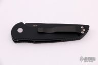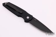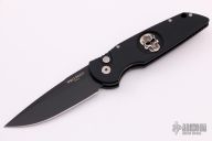 This Tactical Response TR-3 by Pro-Tech black anodized aluminum body, which provides good traction and looks great. The blade is black finished 154-CM stainless steel with a plain cutting edge. The TR-3 is a knife that won't let you down. It fires hard, locks up like a rock, and feels great in hand. The slim design sits comfortably for tip-up pocket carry. Black Lip Pearl is inset into the firing button, adding a unique and awesome flare to the piece. Sterling Silver Skull in handle. Comes with original box and papers. Excellent condition. #6 of 300