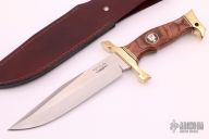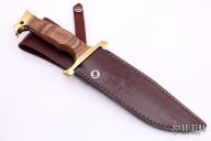 Gil Hibben lives and works in LaGrange, Kentucky. He began making knives part-time after his discharge from the Navy in 1956. He sold his first bowie knife for $45 and that sparked his long and famous career as a professional knife maker. While living in Seattle, WA after his Navy discharge, Gil worked as a machinist for Boeing Aircraft and learned a lot about metals and their properties. In 1964, while living in Salt Lake City, Utah, Gil started making knives full time. This was also the year Gil started making knives from the relatively new 440C steel. Although it is the industry standard now, Gil believes he was the first custom knife maker to use 440C. Hibben has been a full time custom knifemaker since 1957. Over the years Gil achieved fame as a premier custom knife maker and his work has been featured in, and on the covers of, national gun and knife magazines. He has established a whos-who following of collectors including John Wayne, Elvis Presley, Steve McQueen, Sylvester Stallone and Steven Segal or world leaders such as Israel's Defense Minister Moshe Dayan, the Sultan of Brunei and Vice-President Dan Quayle. He has taught and influenced some of the other legendary knife makers such as S.R. Johnson, Harvey Draper and Buster Warenski among countless others. Hibben designed the first line of Browning hunting knives in 1968, the American Kenpo Knife for Ed Parker. Gil's fame dramatically increased in 1988 when Sylvester Stallone, who had purchased several of Gil's custom knives for his own collection, asked Gil to design the now famous knife used in the movie Rambo III. Inducted into the Blade Magazine Cutlery Hall of Fame in 1990.