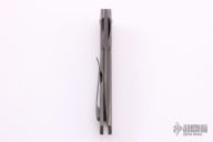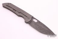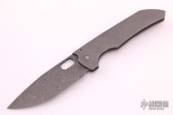 This XL Ti Fighter framelock by Dustin Snyder features an acid stonewashed chisel ground blade with thumbhole. The handle has a tumbled titanium frame with matching tip up clip. Rides on bearings, nice detent, lockup and blade seating. Excellent condition. Comes with zippered case and COA dated OCT 2020