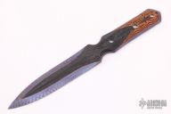 This boot dagger by Warren Thomas features a fingerprint anodized titanium double edged blade with carbidized edges, has black G-10 and orange/black G-10 scale. Excellent condition.