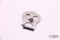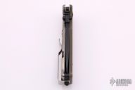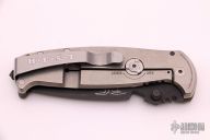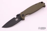 This DPx HEST/F 2.0 features a black PVD coated drop point blade with dual thumb studs and notch that doubles as a bottle opener. The notched thumb rest pulls pulls double duty with three different sized wire strippers. The handle is comprised of a OD Green G10 "A" side and a tumbled titanium lockside with "RotoBlock" mechanism that turns the knife into a virtual fixed blade with a turn of the dial. Black polymer backspacer. The stainless steel tip up clip can be positioned for left or right hand carry. Carbide glass breaker on pommel can be replaced with a rounded screw (included) if desired. Lanyard hole doubles as a 1/4" hex driver. Includes original box, paperwork and spanner/disassembly tool. Excellent condition. Blade Steel: German Niolox corrosion resistant blade is PVD coated with a matte black TiCN coating