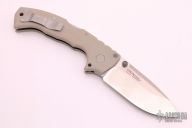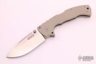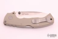 The 4-Max, by Cold Steel, features a drop point blade composed of tumbled finished CPM-20CV steel and dual thumb studs. The tip up carry pocket clip and backspacer are both titanium. The handle consists of desert tan G10 scales. Strong lockup and detent; excellent condition. Comes with original box.