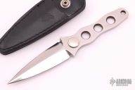 This Skeleton Boot Dagger by Pacific Cutlery features a satin finished chisel ground double edged blade with hollow ground b-side, .184" blade stock and 1.132" blade depth. Comes with a black leather boot sheath. Has a few very fine scratches, otherwise excellent condition.