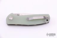 The Jasmine by Alliance Designs is a solid EDC performer, designed with Ray Laconico's distinctive minimalist design style. This model sports a satin finished blade and jade G10 scales over stainless liners. Stonewashed stainless steel tip up pocket clip. Comes with zippered case and original box. Nice Detent, Lock up and blade seating. Excellent condition.