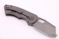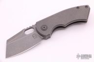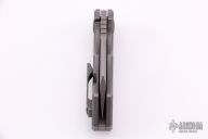 This Production Slim Mini by Berg Blades features a stonewashed blade with notched thumbrest and thumbhole. The handle has a stonewashed titanium frame with matching backspacer and tip up clip. Comes with zippered case and COA. Nice detent, lockup and blade seating. Excellent condition.