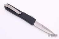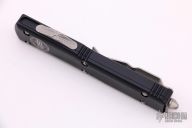 This Ultratech by Microtech is the 2019 Blade Show Special. It features a bayonet ground double-edged stonewashed blade. The handle has a black aluminum frame with blasted stainless hardware and tip up clip. Comes with original box and papers. New from maker at the 2019 Blade Show.