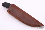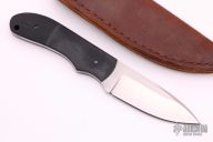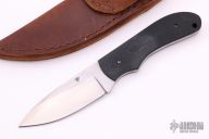 This knife by Aaron Frederick was designed and made for a secret service agent, this knife is 1 of 6 that were made. It features a satin finished drop point blade with a full tang construction, .163" Blade Stock. 1.239" Blade Depth. The handle features black G-10 scales. Includes a brown leather sheath. Excellent condition.
