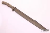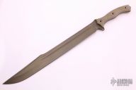 This F-16 by Busse features a bronze coated blade with fullers, .227" blade stock and 1.795" blade depth, full tang construction. The handle has green canvas micarta scales. New from maker.