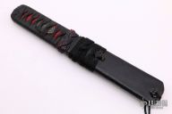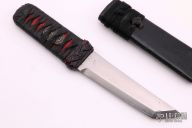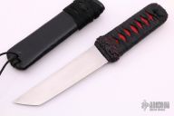 This Kwaiken by Phill Hartsfield features a satin finished chisel ground tanto blade, .127" blade stock and 1.223" blade depth, hidden tang construction. The handle has epoxied cord wrap. Comes with original scabbard. Excellent condition. Comes with zippered case.