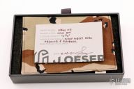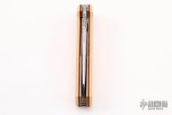 This Nebo flipper by Jared Oeser features a hand rub satin finished blade with false top edge and flipper. The handle has a bead blasted titanium frame with ivory Westinghouse micarta scales. Nice detent, lockup and blade seating. Comes with brown leather pocket sheath, hank and COA. Excellent Condition.
