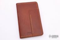 This stitched leather Field Notes cover from Enrique Pena can be used to hold a Field Notes journal (included) and also has slots for a pen and two interior slots for credit/business cards. 6.45" tall x 4" wide. Enrique's leather work is just as impressive as his knives. Excellent condition.