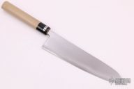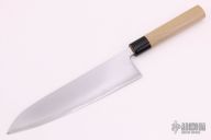 This Gyuto from Shinichi Watanabe features a stainless clad blue steel blade with a hidden tang construction. .130" Blade Stock. 2.165" Blade Depth. The handle features horn hilt nicely complemented by a Ho wood grip. This is a fantastic piece that is razor sharp. New from Maker.