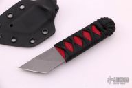 This Kiridashi by Ben Tendick of BRT Bladeworks features a bead blasted blade.  .151" Blade Stock.  1.014" Blade Depth. The handle is comprised of a Japanese style wrapped handle over a dyed epoxy soaked hemp under wrap. Includes kydex sheath and COA. New from Maker.