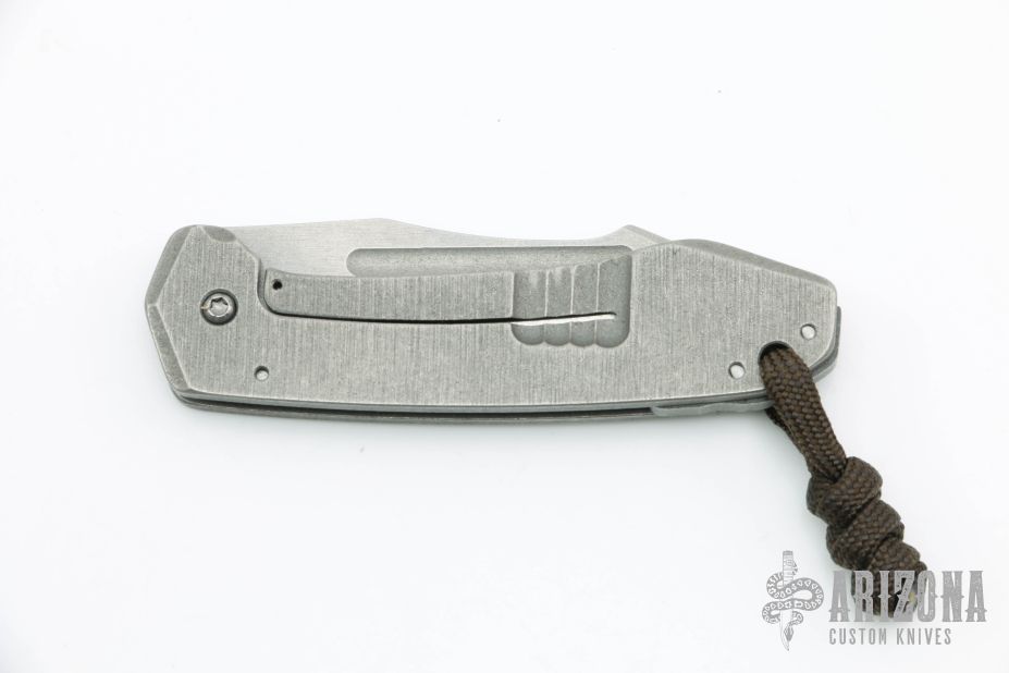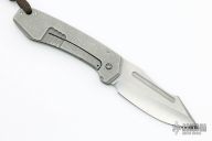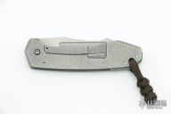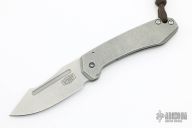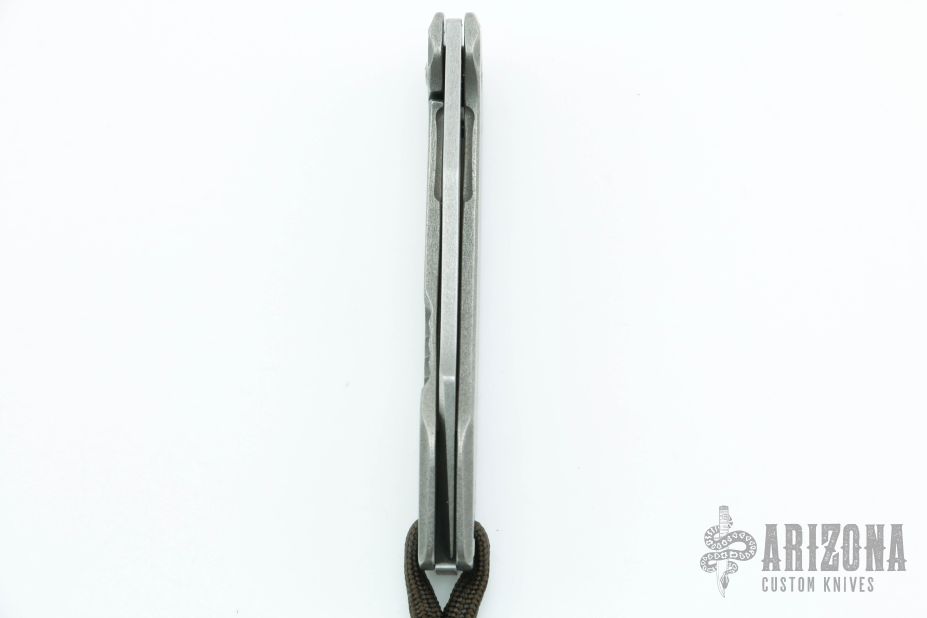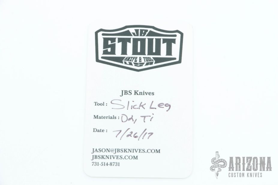 This Slickleg by Jason Stout features a tumbled and chisel ground blade with fullers. The handle has a tumbled titanium frame with a stainless steel backspacer. Comes with COA dated 7/26/17. Excellent condition.