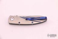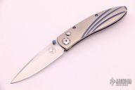 This B05-FT II Titan II from William Henry Fine Knives features a hand rub satin finished ZDP-189 core San Mai blade with swedge and single thumb stud. The handle is comprised of fluted titanium over barrel spacers. Lanyard hole and leather lanyard in pommel. Includes original box and papers dated Nov 14, 2007. Excellent condition.
