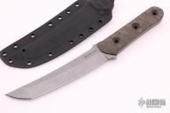 This Raiden Tanto by Ben Tendick features a tumbled upswept blade .205" blade stock and 1.152" blade depth, full tang construction. The handle has sculpted canvas micarta scales. Comes with a kydex sheath and COA. New from Maker.