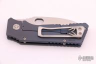This TTF-1 Fat Daddy by Medford Knife and Tool features a satin finished drop point blade with thumb hole and notched thumbrest. The handle is comprised of a bead blasted and anodized titanium frame over titanium stand offs. The titanium pocket clip is positioned for tip up, right hand carry and is satin finished. Includes original box and papers. Has one light scuff on the frame, otherwise excellent condition.
