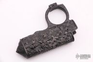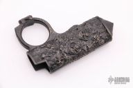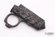 Manufactured in France by 2 Saints Tactical, this bronze Maxi Bic lighter case is absolutely incredible.  It includes what 2 Saints Tactical calls their "love ring" and a skull crusher/glass breaker on the butt-end. It features an awesome bronzed finish with Bastinelli's own Reaper Skulls all over the place. Lighter not included.  New from Maker.