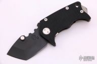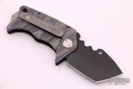 The Panzer is the first in our series of smaller but exceedingly stout folding knives. We named it the German for "Tank" for obvious reasons. This is a compact tanto that is small enough to be out of the way when carried yet tough and capable when needed. The blade is .190" Black PVD D2 and the handles are 1/8" flamed Ti and black G-10. Knife is in Excellent condition. Comes in Medford hard case,, papers and dog tag.