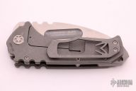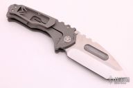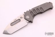 The Praetorian is a Marquee knife. It is a TON of blade in a relatively small package. This design incorporates aerospace materials, space age coatings, old school metallurgy, thoughtful design and hand craftsmanship that is rare but alive and strong in this modern world. This particular knife features a tumble and finished titanium frame and blade, .200 thick titanium scales, all titanium hardware, D2 blade, and titanium clip, tip up carry. Very nice (early) lockup, extremely smooth action, and perfect detent. Dead center blade seating. Comes with original box and papers. Knife is in excellent condition, shows no signs of use/carry.