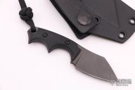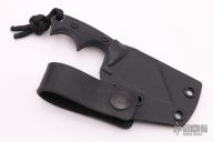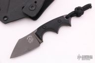 This BB Drago cutter V2 by Bastinelli Knives features a black PVD sheepsfoot blade with notched thumbrest, .117" blade stock and 1.015" blade depth, full tang construction with black G-10 scales with lanyard hole. Comes with kydex sheath with IWB loop and original box. New from maker.