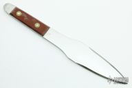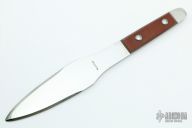 This throwing knife by Bobby Branton features a mirror polished blade, .179" blade stock and 1.950" blade depth, full tang construction, red scales. Has some light oxidation spots, otherwise excellent condition. #187 dated 1996.