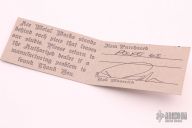 Everyone knows it's smart planning to always keep an ace in the hole! The Ace Metal Works Pocket Ace does just that, with style. The top portion of the Bolt Skull has been ground and polished to come to a chisel edge. While not 'razor' sharp, the edge is plenty sufficient to score and cut through paper, tape, leather and other things that might be in your way. One thing we have learned about working with Ryk Maverick is that he is always pushing forward. He has been working on casting in cobalt for some time and has finally gotten it dialed in. Ace Metal Works is a new line from Ryk Maverick of Starlingear fame. Rick is a multifaceted artist and does work in many different genres and styles. He wanted to do a more traditional looking skull as sort of a 'tip of the hat' to his mentor Gabor Nagy and thus Ace Metal Works USA was born! Featuring the same handmade, craftsmanship and quality Starlingear is known for in a whole new style. Comes with leather sheath. Excellent condition. Comes with COA