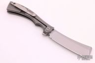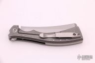 This Sheba Mid-Tech by Dervish Knives features a tumble finished blade with a notched thumbrest.  The handle is composed of a tumbled titanium frame, polished titanium backspacer and tip up pocket clip. Nice detent, lock up and blade seating.  Comes with a padded zippered case and COA Dated Fbb 2021.  New from maker.